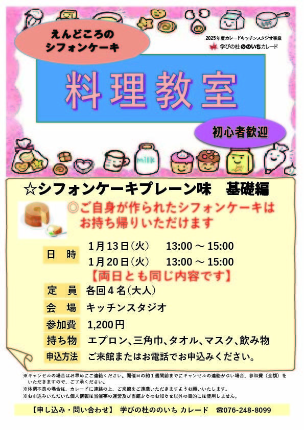 『えんどころのシフォンケーキ料理教室』のご案内です。